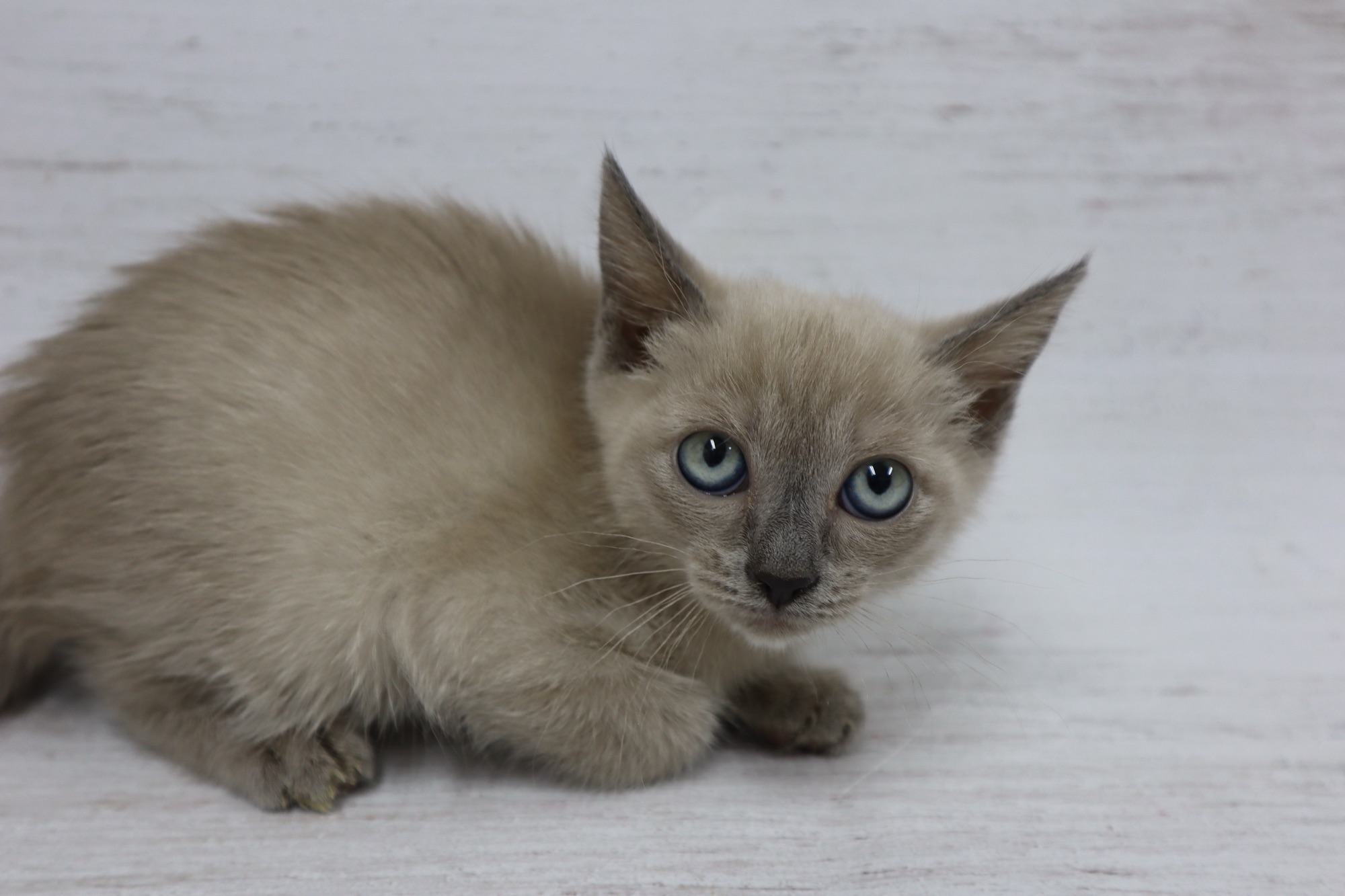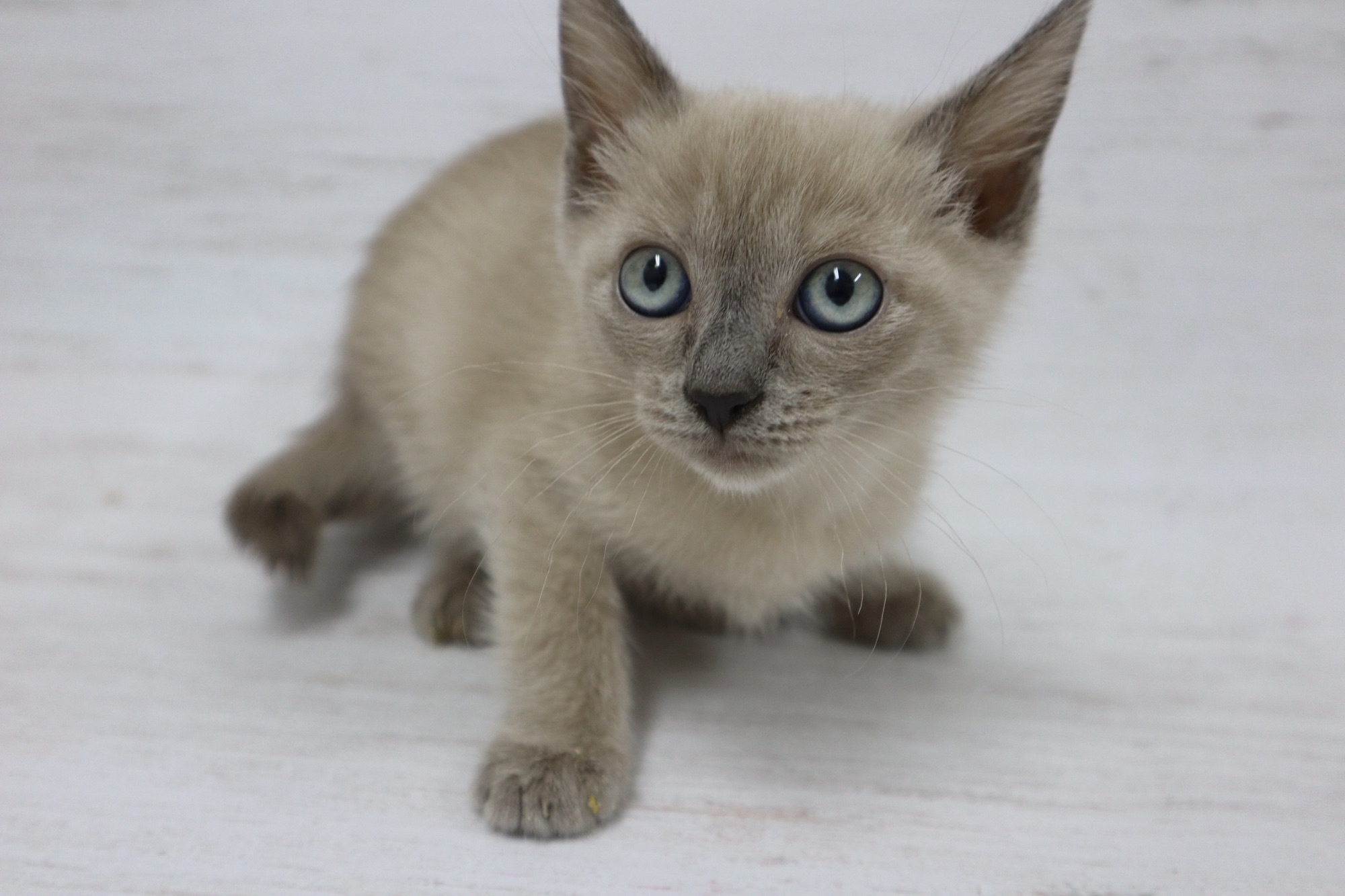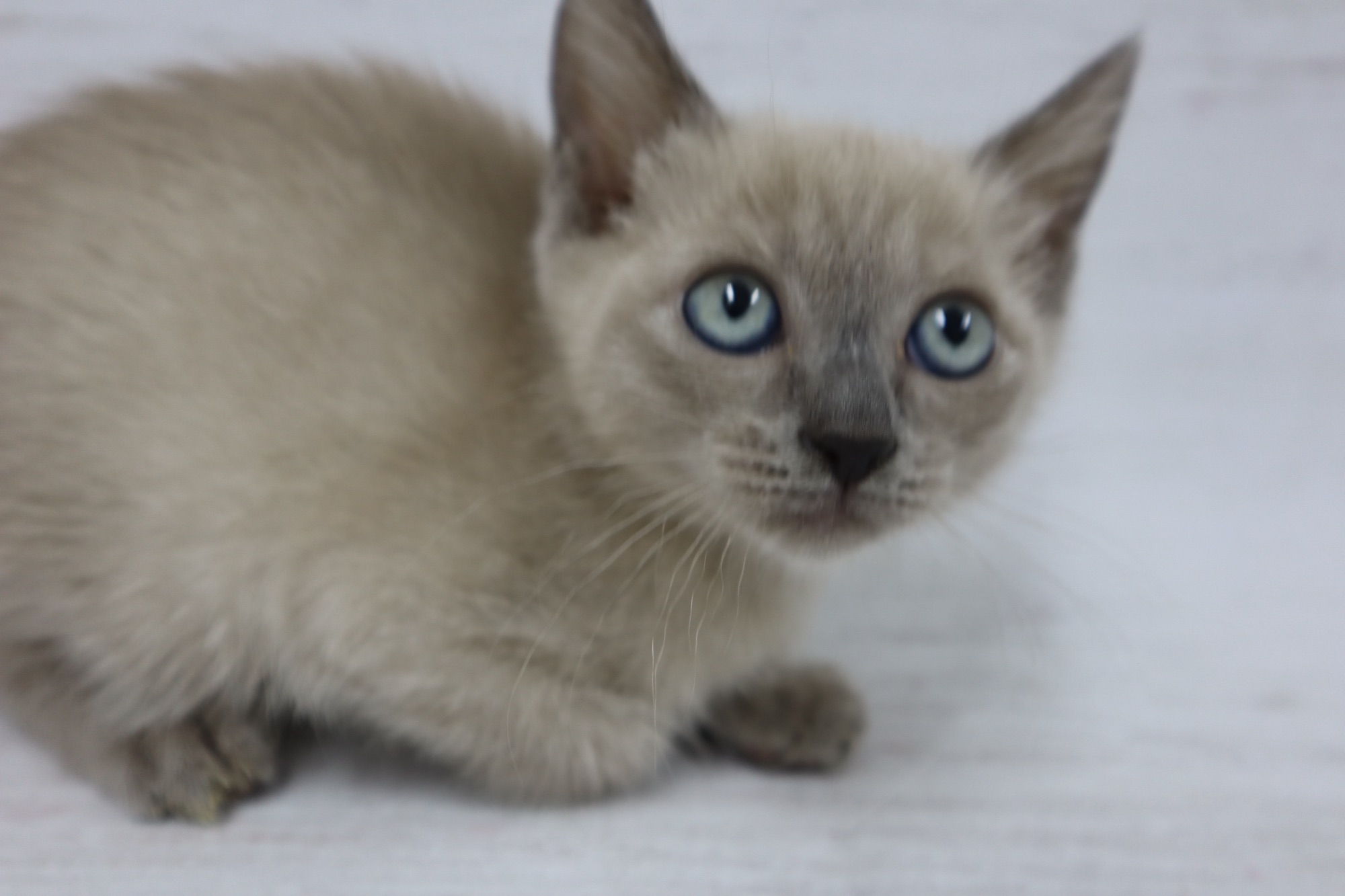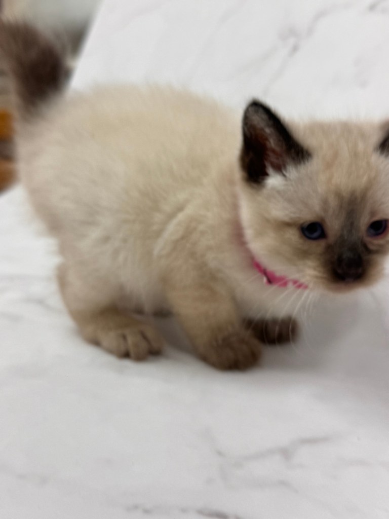とても小さいシールリンクスポイントの男の子です。お目目がまん丸です。トイボブらしい体をしています。お父さんは、フラッフィー ロシア出身です。お母さんは、コンスタンティーナ【チョコレートトルティー) ロシアとアメリカのハーフの子です。