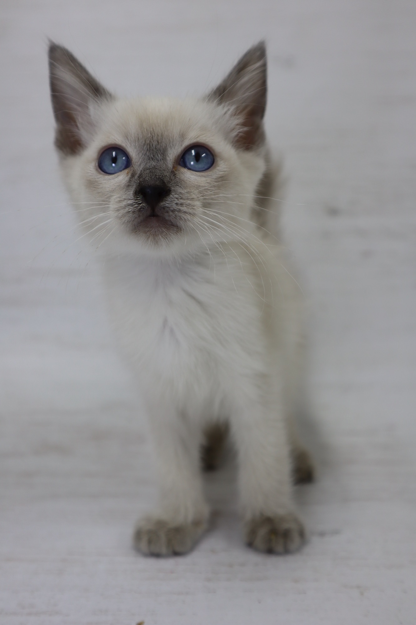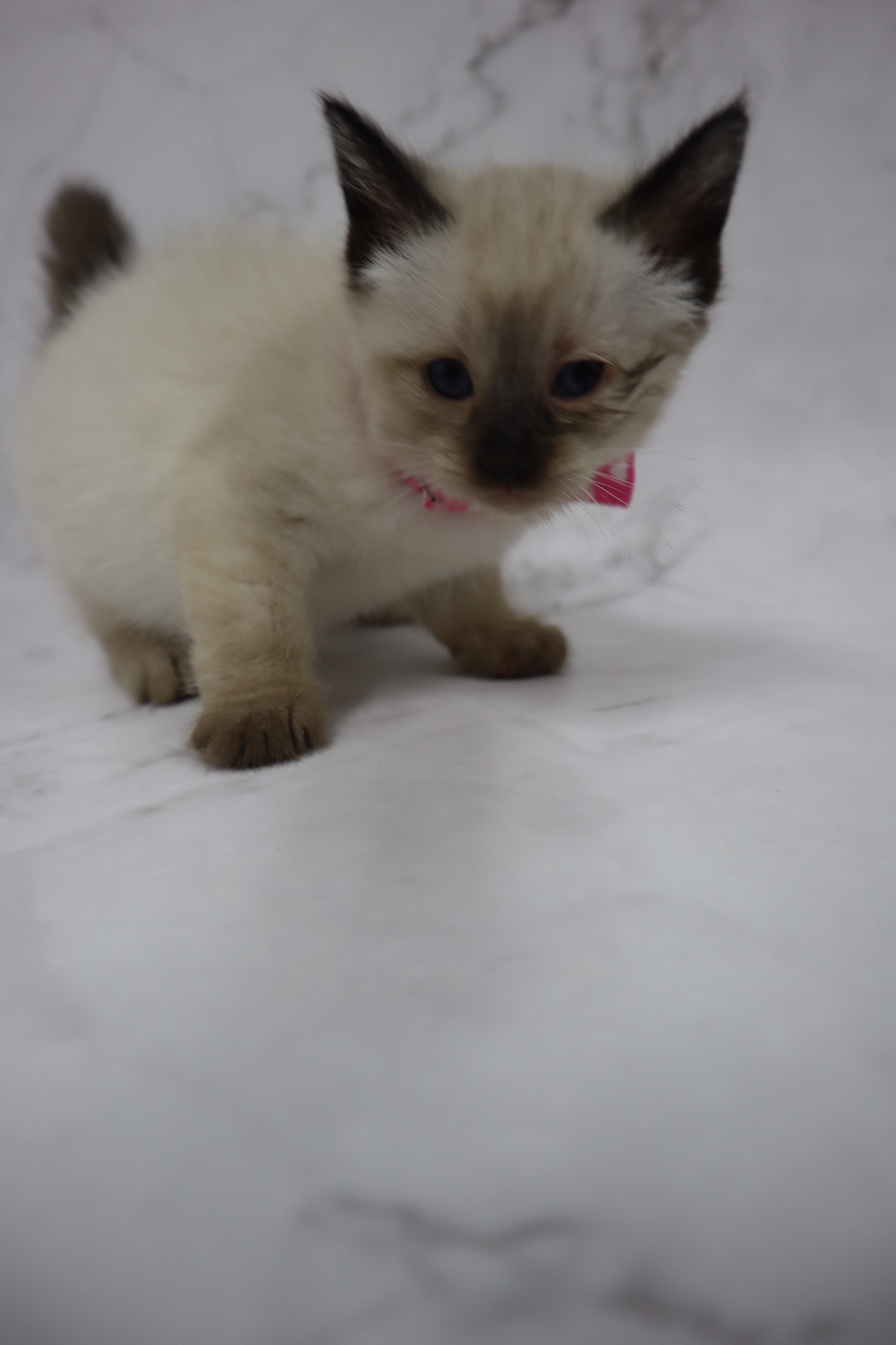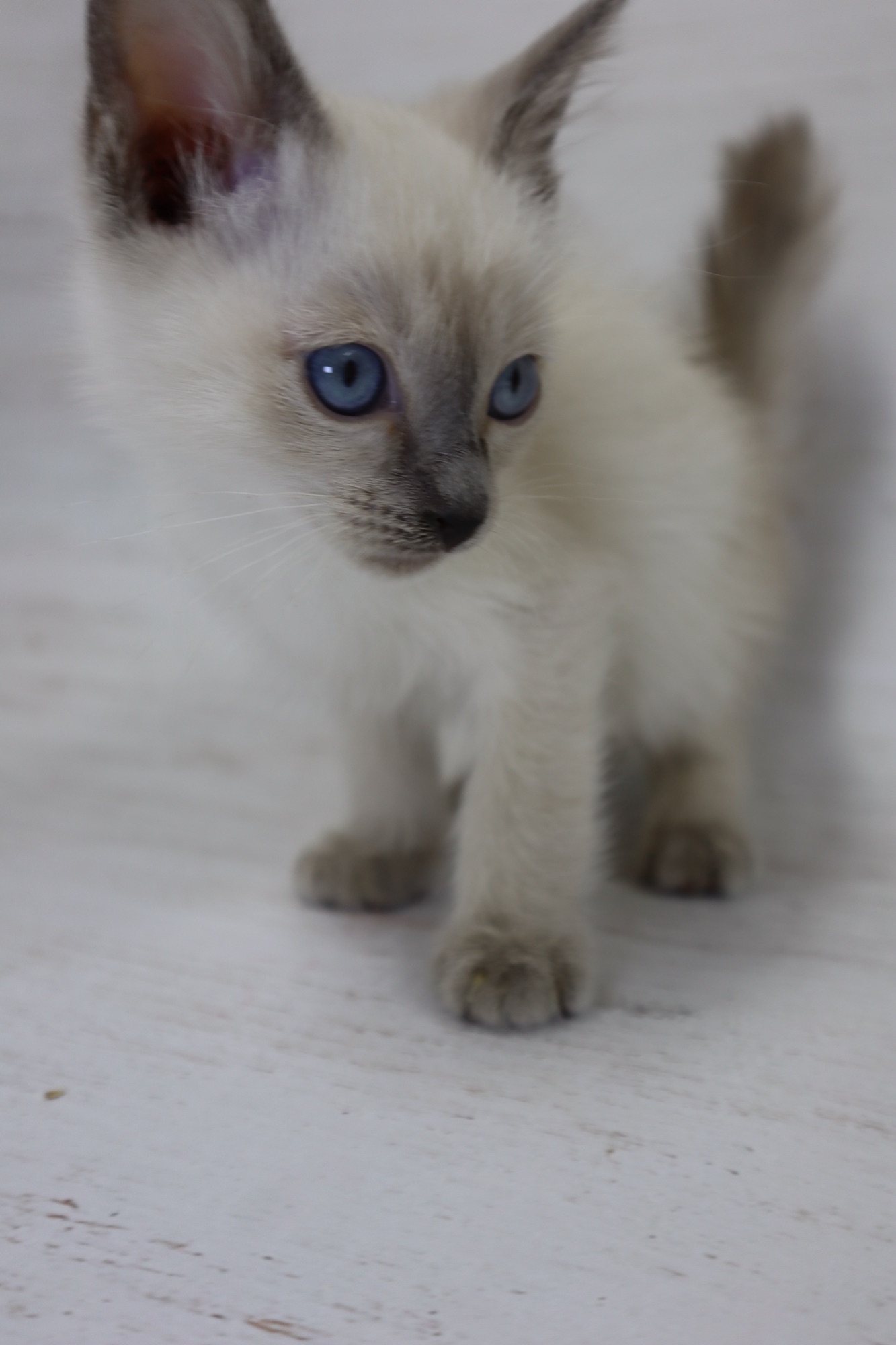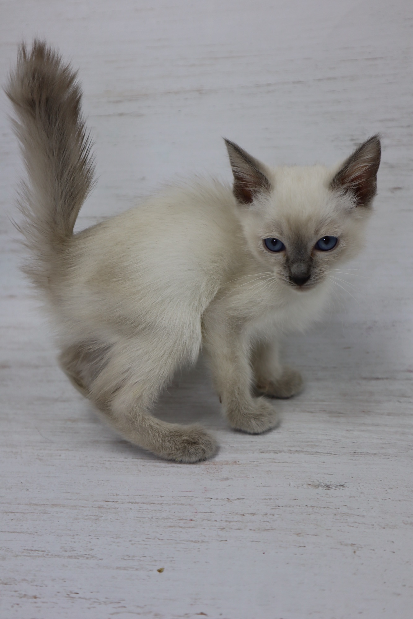 とても小さいシールリンクスポイントの男の子です。お目目がまん丸です。トイボブらしい体をしています。お父さんは、フラッフィー ロシア出身です。お母さんは、コンスタンティーナ【チョコレートトルティー) ロシアとアメリカのハーフの子です。