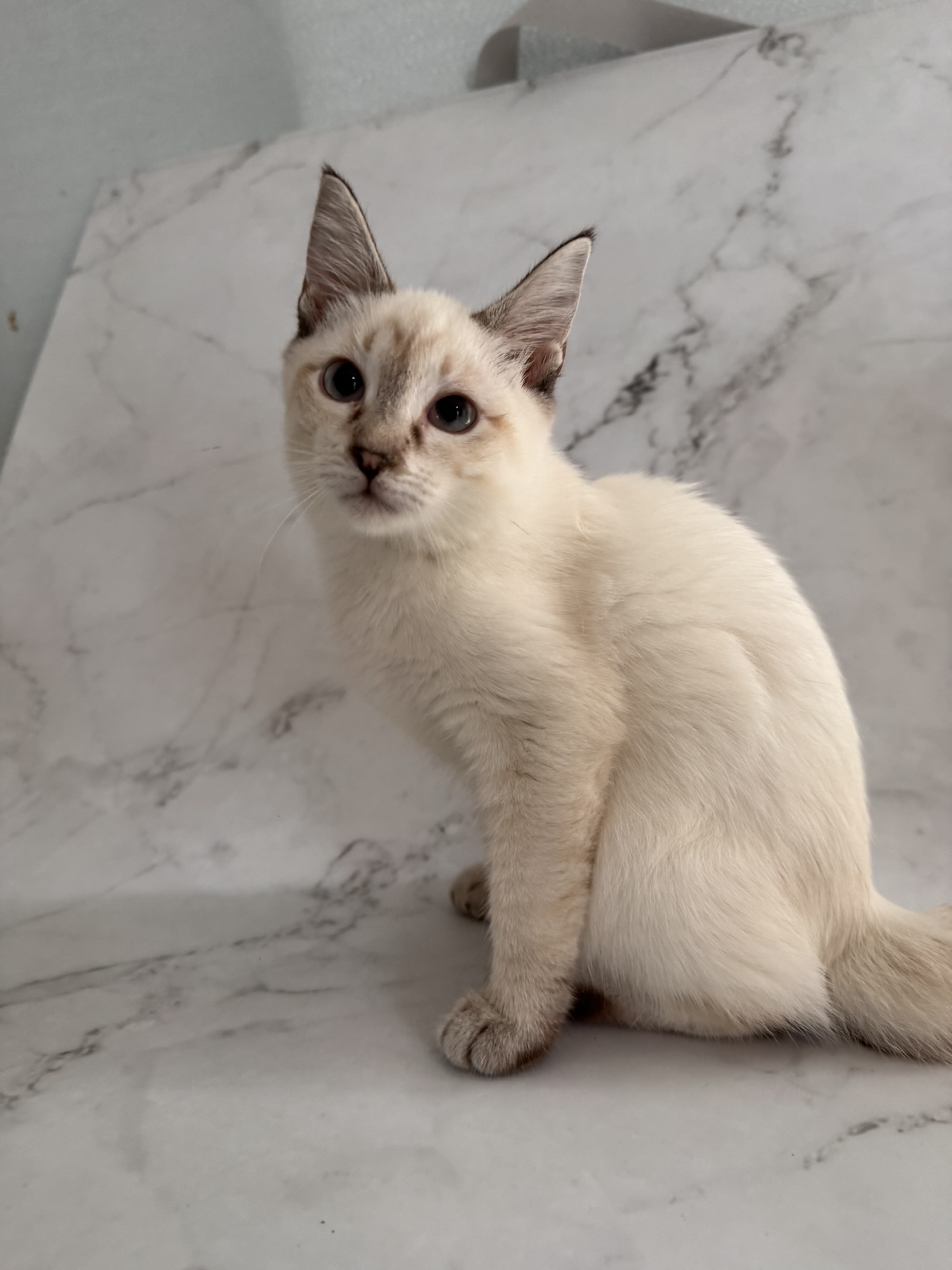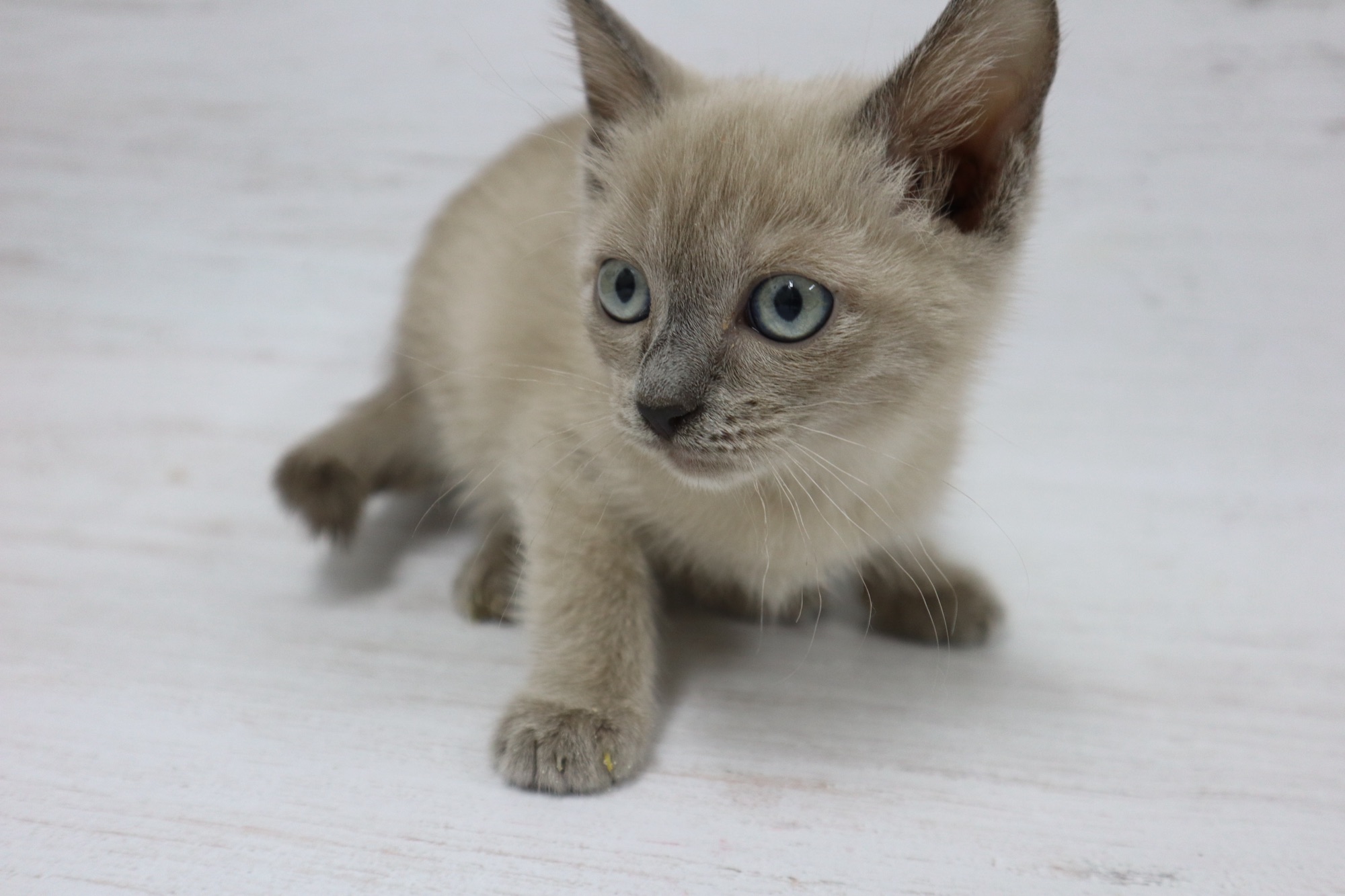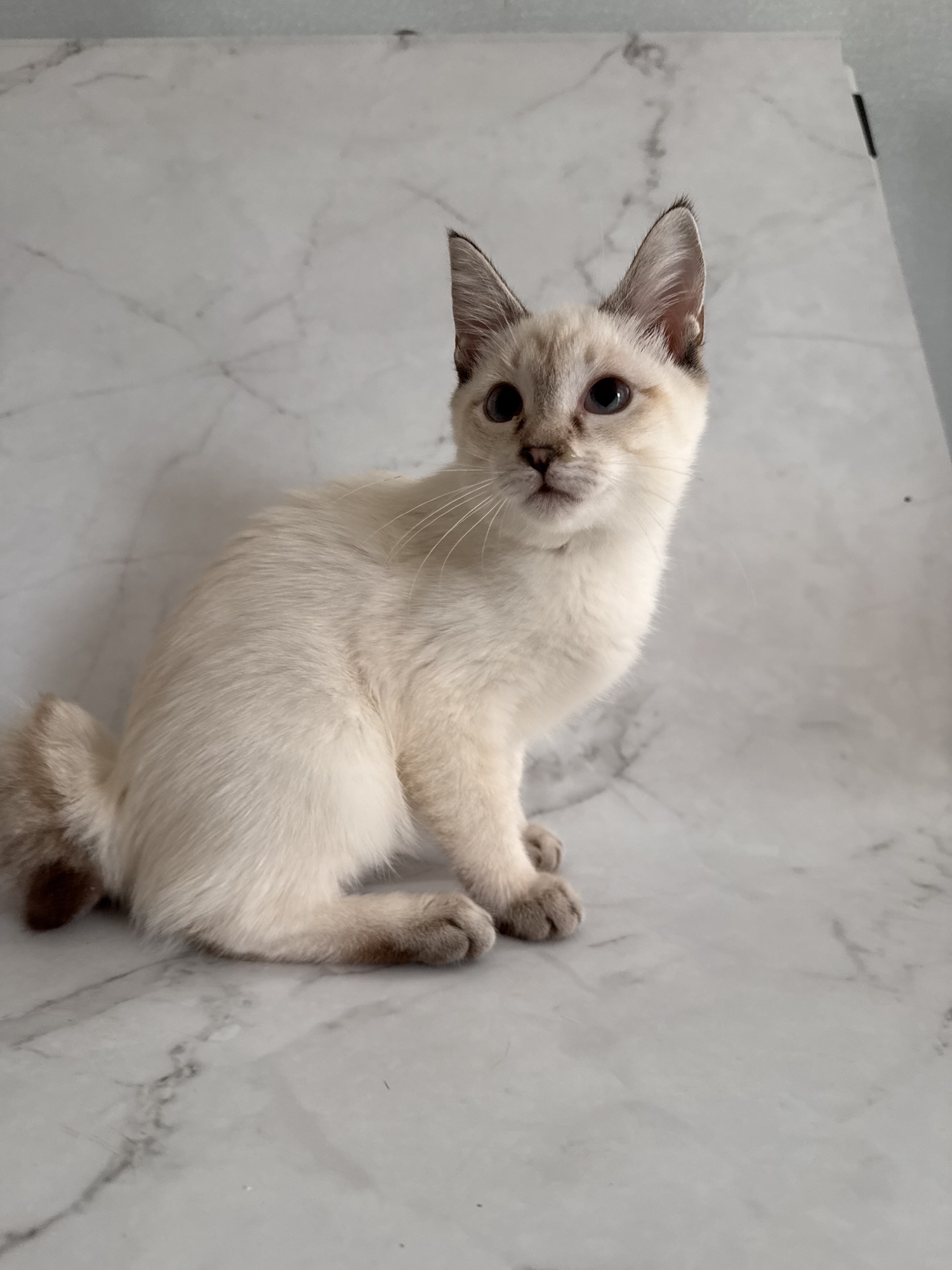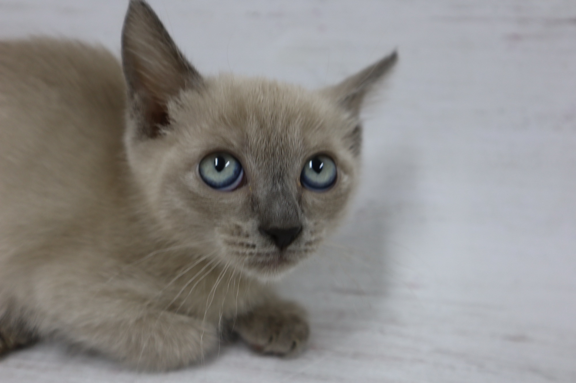 とても小さいシールリンクスポイントの男の子です。お目目がまん丸です。トイボブらしい体をしています。お父さんは、フラッフィー ロシア出身です。お母さんは、コンスタンティーナ【チョコレートトルティー) ロシアとアメリカのハーフの子です。