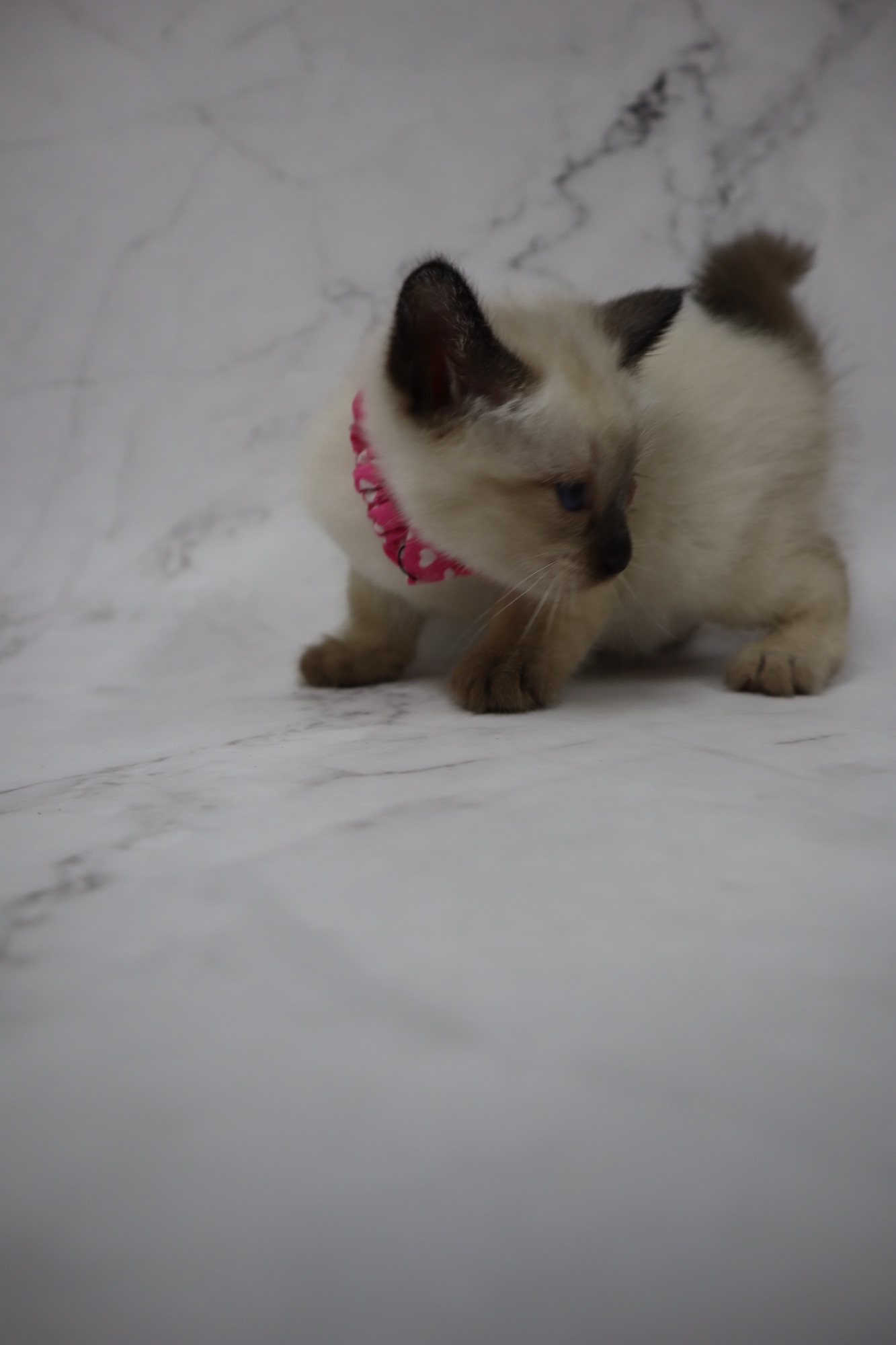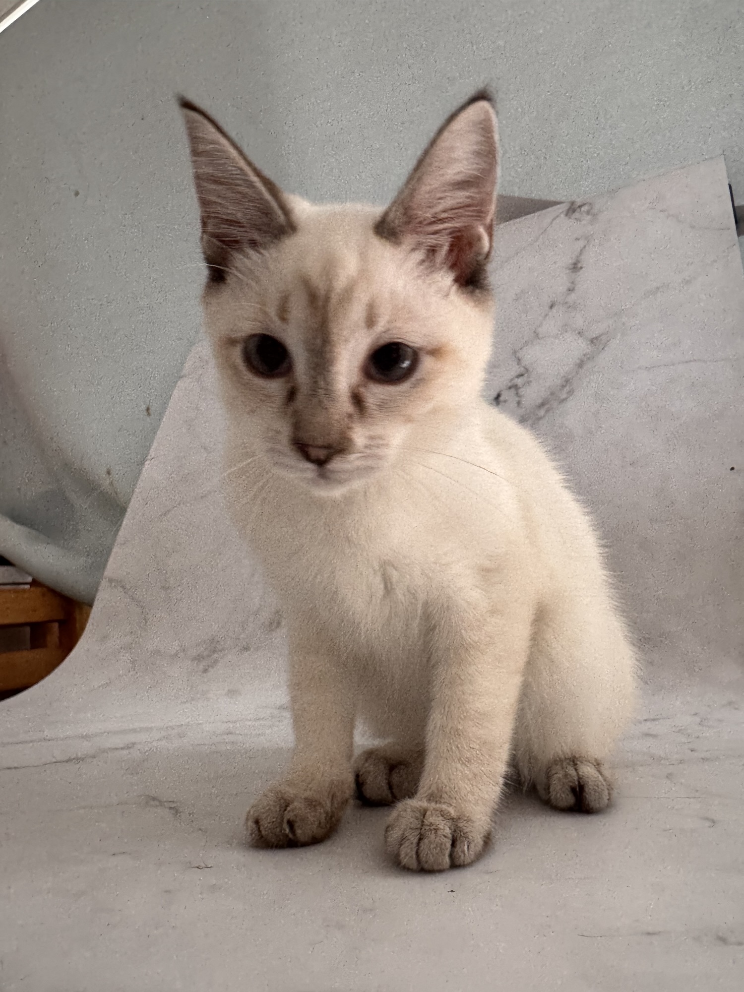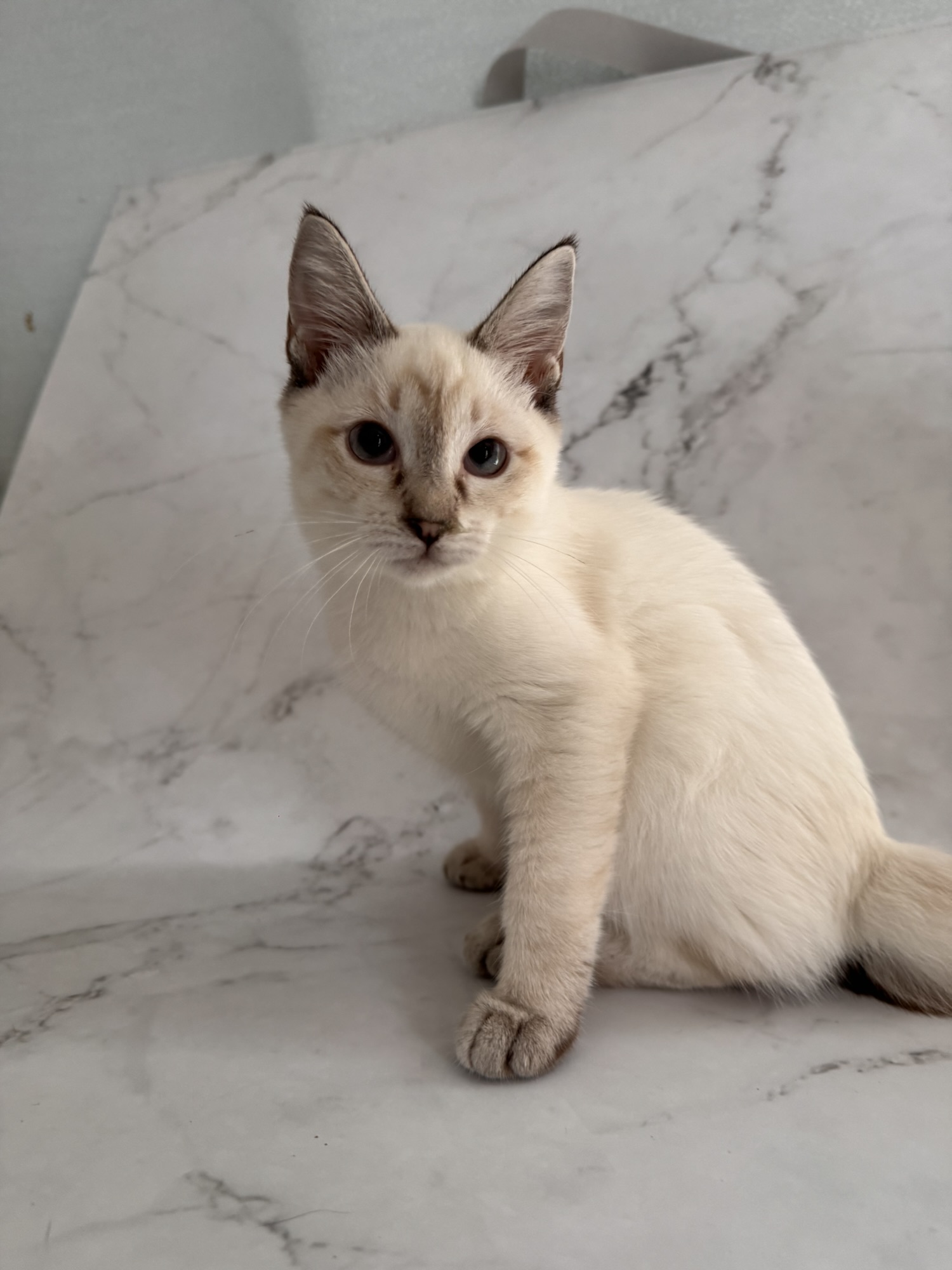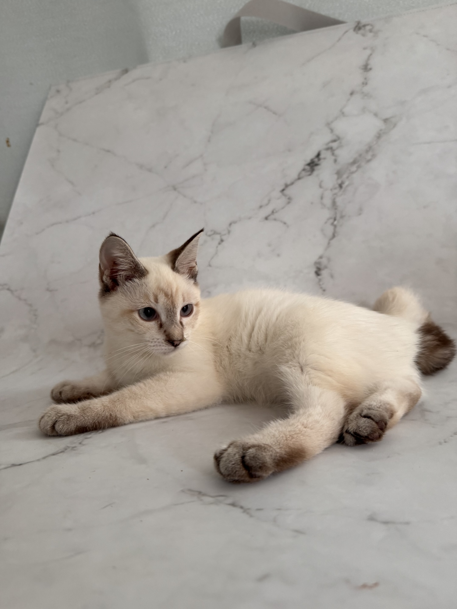 とても小さいシールリンクスポイントの男の子です。お目目がまん丸です。トイボブらしい体をしています。お父さんは、フラッフィー ロシア出身です。お母さんは、コンスタンティーナ【チョコレートトルティー) ロシアとアメリカのハーフの子です。